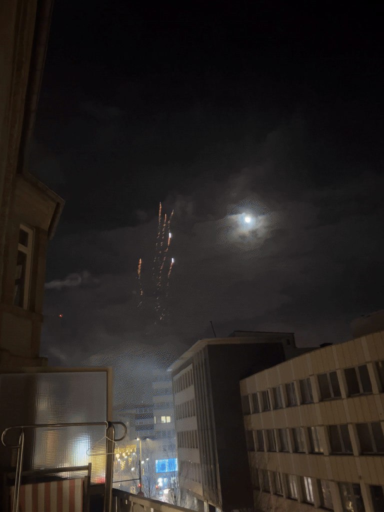 1월 1일 새해마다 독일에선 폭죽을 터뜨리는 문화가 있나봐여? 제가 살던 집은 베란다로 나가면 바로 눈앞에서 불꽃놀이를 감상할 수 있는 슈퍼경치를 갖고 있었답니다.